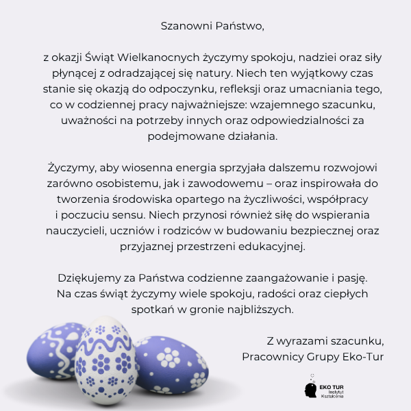 I gdzieś w tym wszystkim pojawia się Wielkanoc. Nieśmiało, między sprawdzianem a radą pedagogiczną. Zajączek przemyka przez dziennik elektroniczny, zostawia ślad w postaci wolnego dnia i znika, zanim ktoś zdąży go zapytać o podstawę programową.